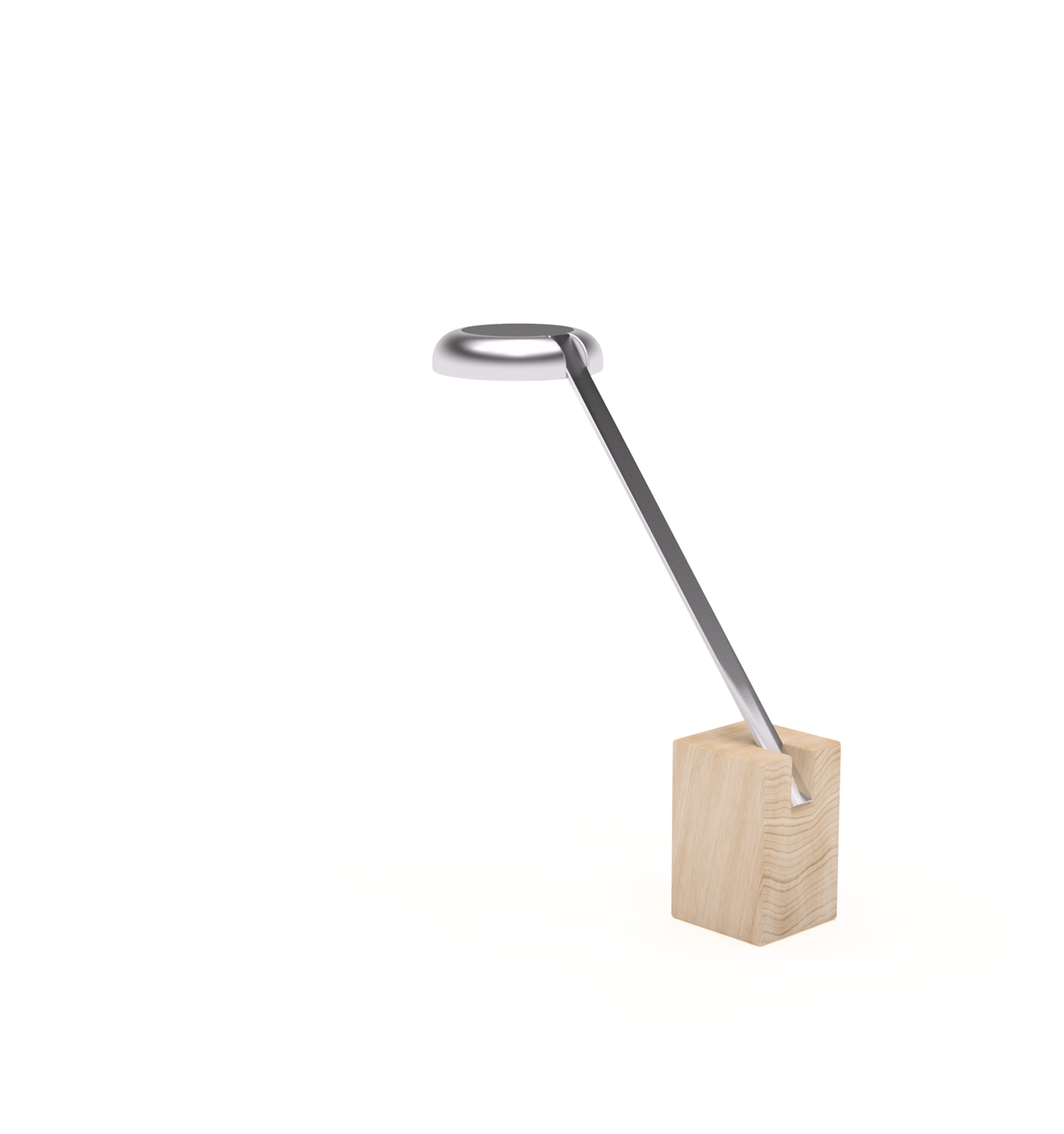 « Tögal Lamp » is a floor lamp composed of a wooden base and a stainless-steel shade.