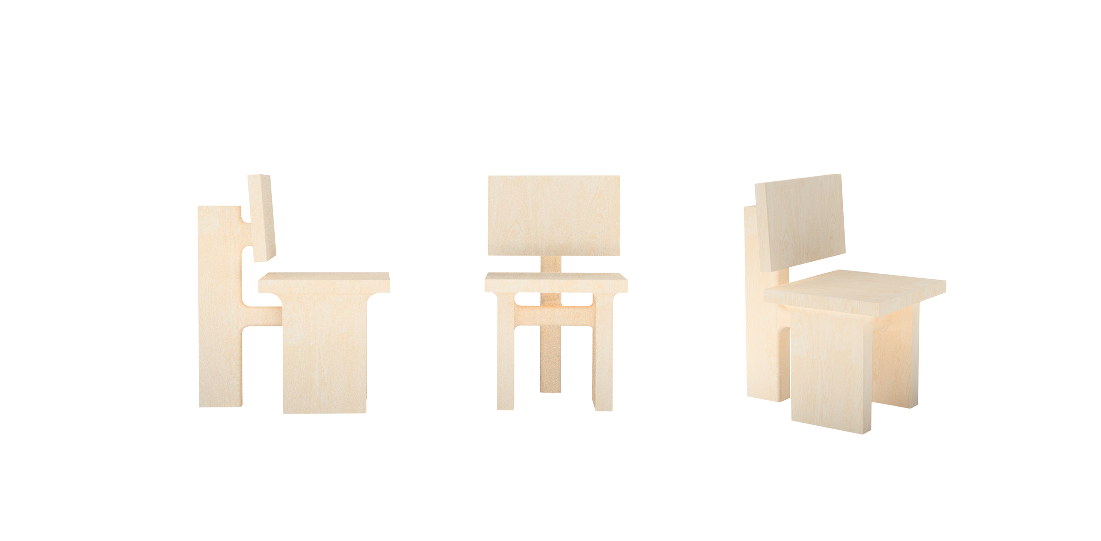 “Softwood Chair” is made from pine wood, combining sharp and softened edges.
