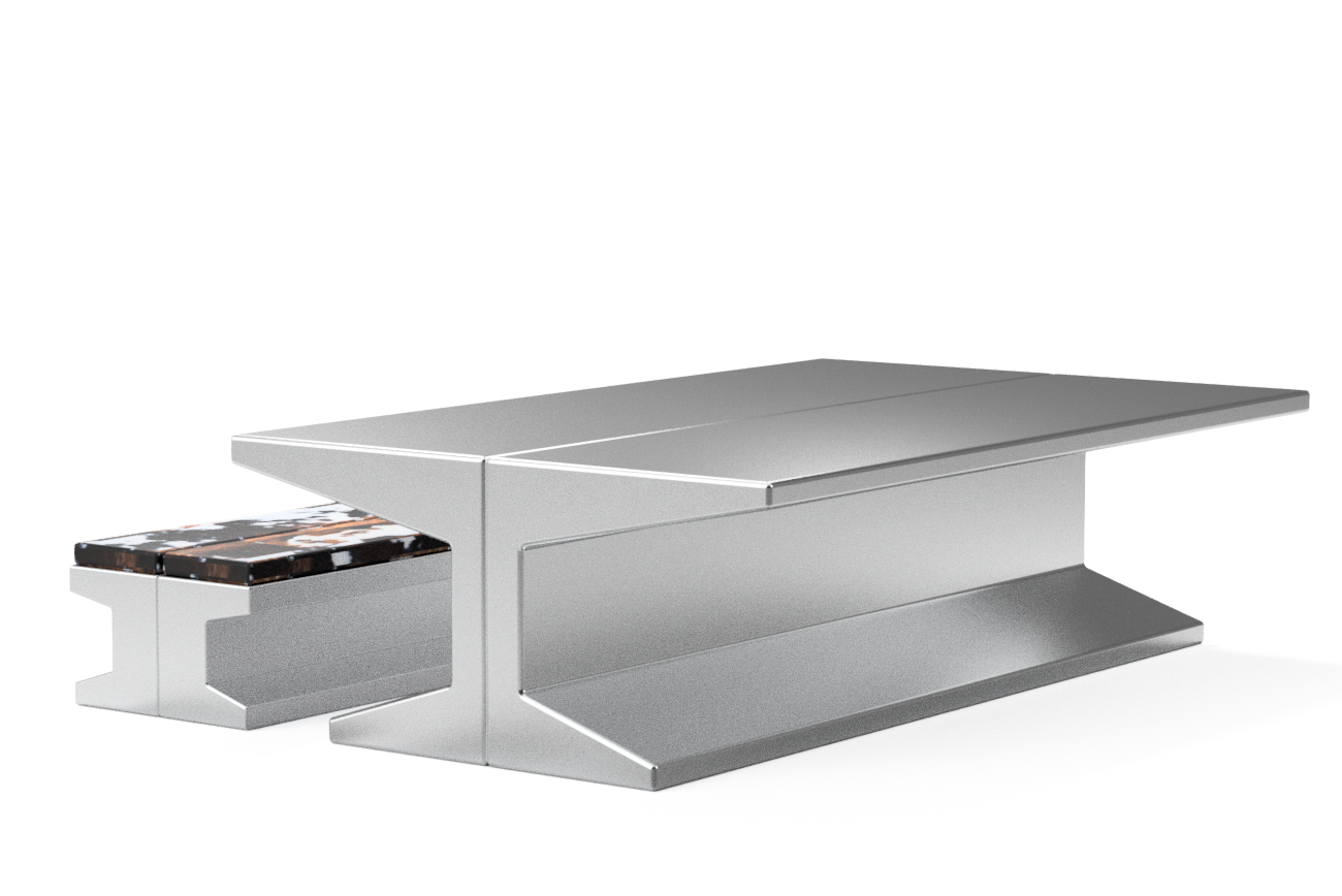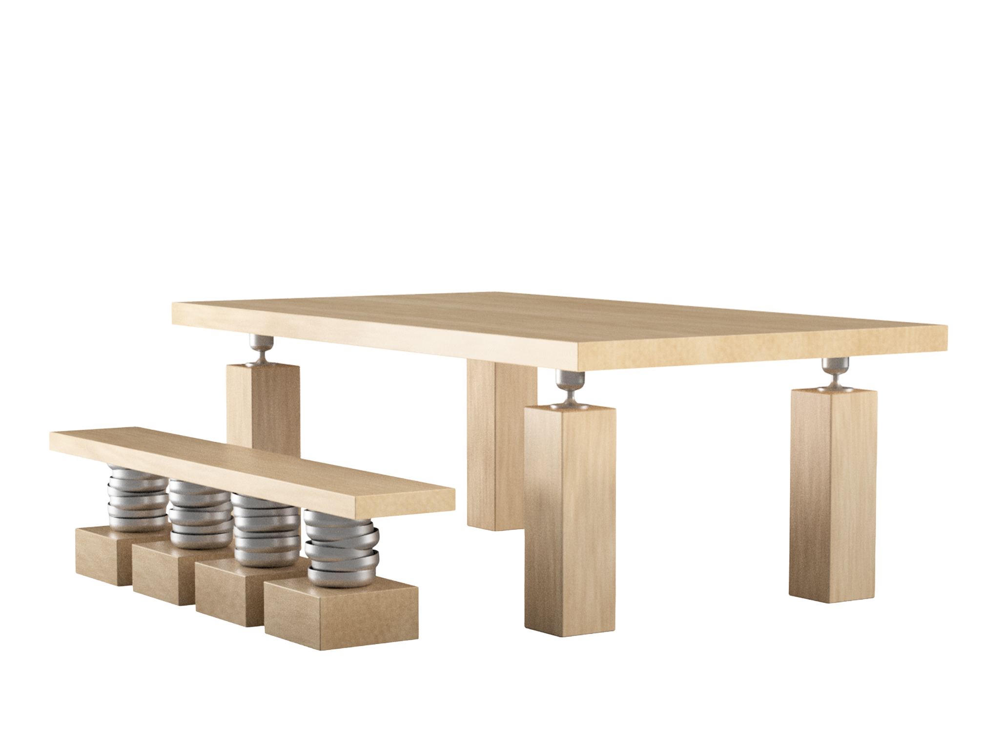 “USM Collection” is composed of a chaise longue, table, chair, bench, coffee table, lamp, sofa, and armchair.