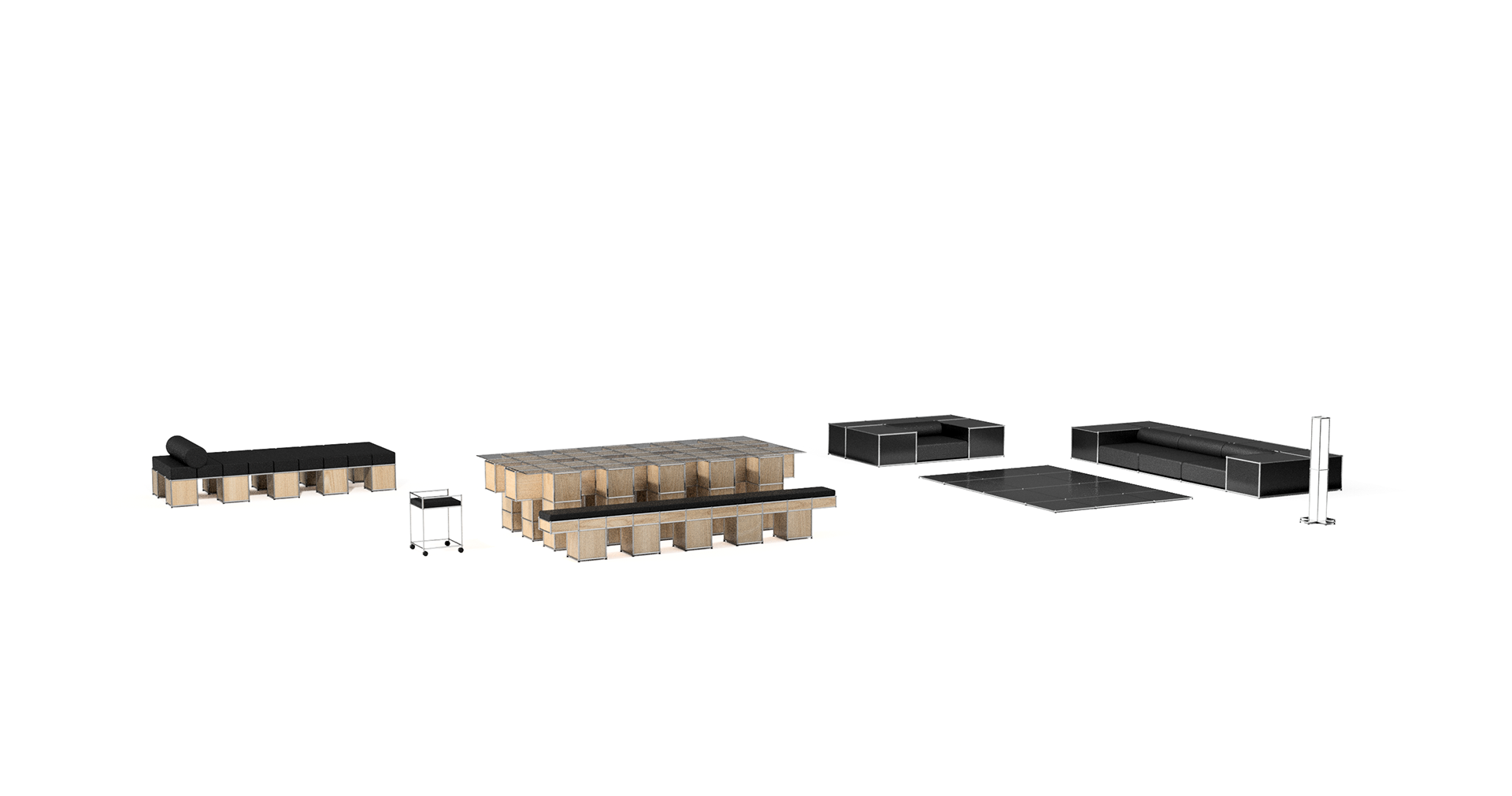 Conceived as a conceptual project, it rethinks interior space through the modular language of USM