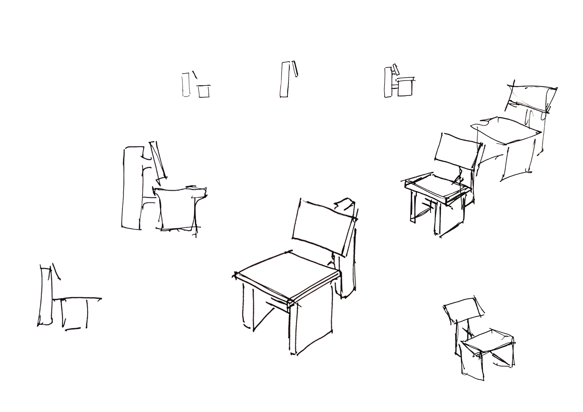 The back leg is slightly offset, reinforcing the sense that each part stands apart, while the seamless joinery gives the impression of a single, unified piece.